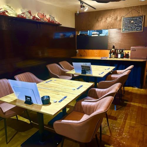テーブルでゆったりとお食事とお酒を楽しむことができます。4名様席が3つございます。